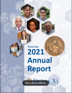 The Annual Report shares the Sigma Xi community's accomplishments through data and stories that speak to the reach of the Society's membership, chapters, programs, and publications. It also explains the ways in which Sigma Xi used generous donations from supporters.