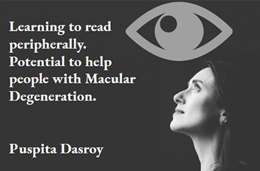 About 11 million people in the USA have macular degeneration, an eye disease that blinds central vision. They read peripherally, i.e. out of the corner of their eyes. Peripheral reading is slow. My project assessed how much peripheral reading could be improved through training.