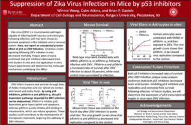 Zika virus (ZIKV), a mosquito-transmitted flavivirus with a (+)ss RNA genome, infection prompts cell-cycle arrest and apoptosis in proliferating neural progenitors. The tumor suppressor p53 plays a major role in apoptosis and inflammation in the central nervous system during viral infection. Previous
