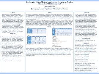 Held as a fundamental right across most of the planet, freedom of expression is essential for both guaranteeing governmental responsibility and maintaining the democratic process. The objective of this paper is to explore the effect of several variables upon the level of freedom of expression across different countries. A review of the literature suggests that several variables have the potential to impact freedom of expression, including education, corruption, and Hofstede’s six cultural dimensions. A sample of 72 countries which had available data for all model variables was used. Using Excel and SPSS, hierarchical regression was used to analyze the statistical significance of various models, as well as examining the variance inflationary factor (VIF), which was used to measure the degree of multicollinearity between variables and which found that the results could be interpreted without concern for multicollinearity. The results of this study suggest that corruption and culture, specifically Hofstede’s uncertainty avoidance and indulgence vs. restraint dimensions, are factors that significantly affect the level of freedom of expression in a country, with the final model explaining 43.6% (p<.000) of the variance in freedom of expression. Of these three significant model variables, corruption explained the greater part of this variance and is also the model variable most able to be directly influenced by government policy aiming at an increase in the level of the freedom of expression. Limitations and implications for future research are also discussed.