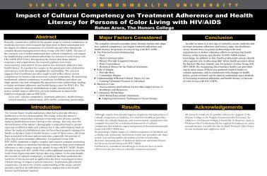 Recently, experts have called for the greater usage of cultural competency in medicine; however, little research has been done to better understand how the degree of cultural competency of a health-care provider impacts the complex disease management for those living with HIV/AIDS. The aim of this research was to better understand how cultural competency can impact the health literacy and treatment adherence for persons of color living with HIV/AIDS (POCLHA). Recognizing the factors that shape patient experience and expectations, the research explores how many socioeconomic and cultural factors lead to low treatment adherence and health literacy. It considers the nuance in the patient-provider relationship and explores tools that may strengthen the relationship. The research suggests that a healthcare provider ought to