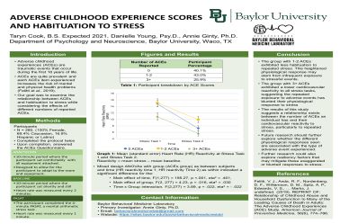 Adverse childhood experiences (ACEs) are traumatic events, such as abuse or household dysfunction, that occur during the first 18 years of life. Previous research suggests 52.1% of the population has at least 1 ACE score and that each ACE increases the risk of mental and physical health problems (Felitti, et al., 2019). While past studies have linked ACEs to both exaggerated and blunted cardiovascular responses to stress, they have been unable to explain the mixed results. We aimed to examine the relationship between different frequencies of ACEs and habituation to stress while also extending further research regarding ACEs and cardiovascular reactivity during a repeated psychological stress task. Participants completed the Adverse Childhood Experiences Questionnaire and were organized into the following groups: 0 ACE scores reported (Group 1), 1-2 ACE scores reported (Group 2) and 3+ ACE scores reported