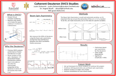 One of the biggest questions in physics at the moment is: what is the quark structure of the nucleons that make up the matter that we are familiar with? Specifically, can we describe the measurable characteristics of nucleons in terms of their most basic building blocks? This question can be answered by measuring generalized parton distributions (GPDs), which are correlated momentum-space distributions of quarks in nucleons. GPDs can be studied by looking at the deeply virtual Compton scattering (DVCS) reaction, which consists of an electron scattering off a nucleon, resulting in the production of a photon, the scattered electron, and the scattered nucleon. Jefferson Laboratory, a medium energy particle accelerator laboratory in Newport News, VA, has a large experimental program devoted to studying DVCS on protons, neutrons, and deuterons using an electron beam up to 10.6 GeV of energy. In this poster, I will present the analysis of coherent DVCS for the deuteron channel. In particular, I will describe the identification of particles, steps to select the exclusive e d → e’ d’ 𝛄 reaction, and the procedure to extract the beam spin asymmetry, which is sensitive to the DVCS process and GPDs of the deuteron.