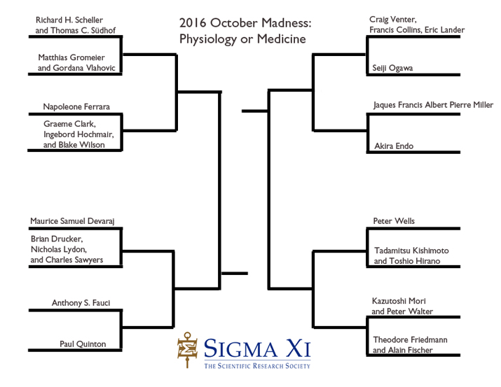 Voting begins today for the 2016 edition of October Madness, a public Nobel Prize prediction contest from Sigma Xi, The Scientific Research Society.