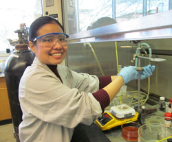 My current research work focuses on developing specialty or value-added products from activated sludge. Our research group is actively working on activated sludge as a main feedstock and converting it to biodiesel. Activated sludge is a solid or semisolid byproduct of the biological treatment of wastewater. Our group has recognized that although we can produce biodiesel from this feedstock, there's still an array of other materials that can be harvested, synthesized and developed from this material. The beauty of our work lies in the fact that one's perspective on sludge can change and suddenly, something that's long been considered waste actually has value after all.