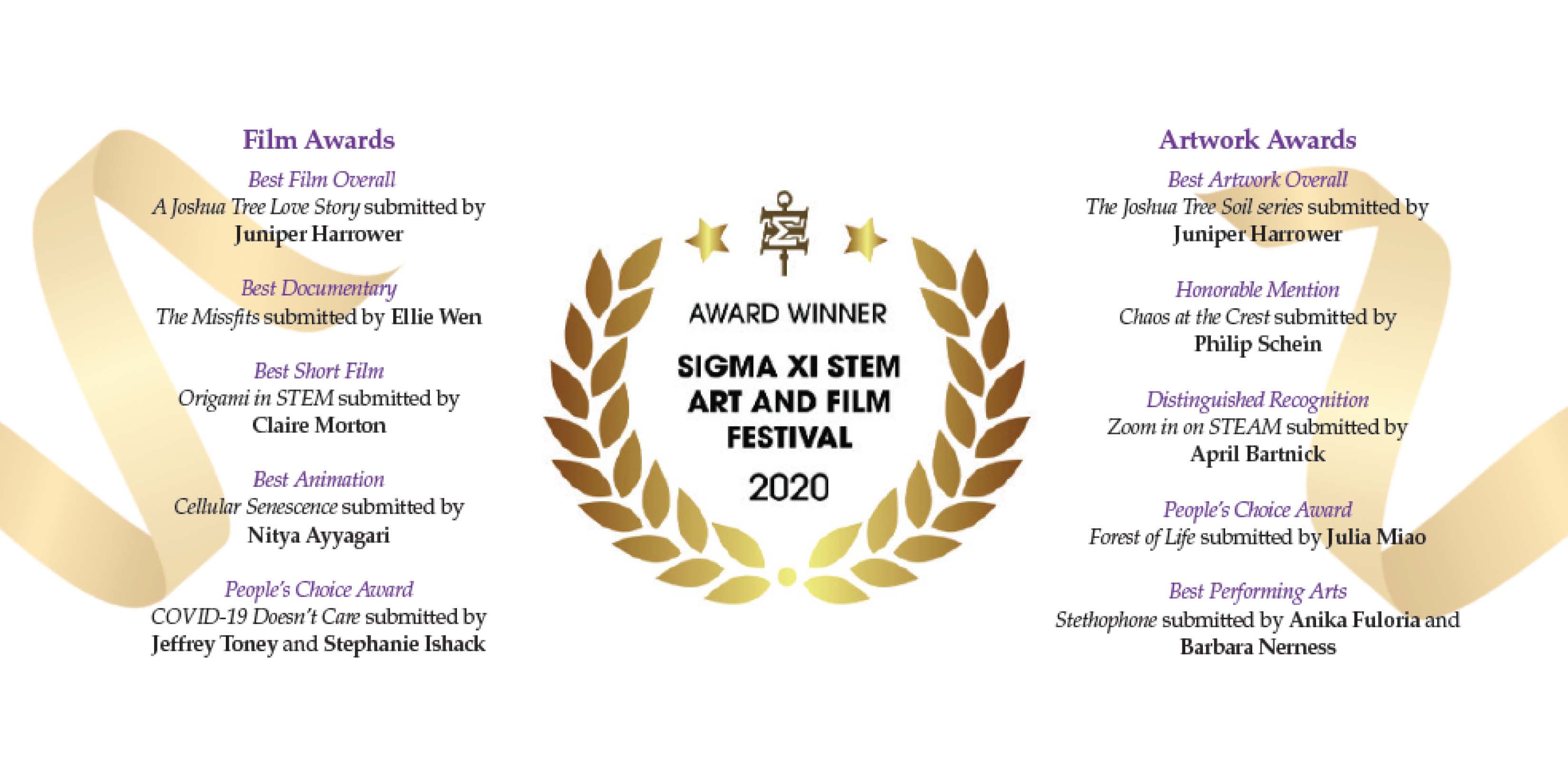 The 2020 STEM Art and Film Festival, held virtually on November 8, celebrated the visual and performing arts as tools that help teach the public about science, technology, engineering, and math. Featuring over 40 works of art and over 20 films, the public festival was the final event of the virtual 2020 Annual Meeting and Student Research Conference held by Sigma Xi, The Scientific Research Honor Society.