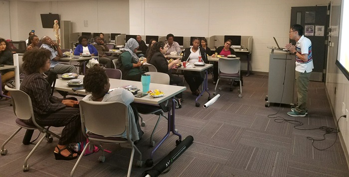 4th photo: The chapter partnered with the PVAMU Biology Department and the Center for Computational Systems Biology to provide the scientific talk.