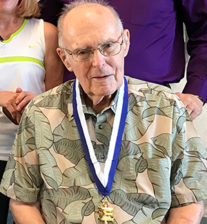 Gordon Moore is the 2019 recipient of Sigma Xi’s highest honor, the Gold Key Award. The Society’s Executive Committee and Board of Directors present the award to recognize a member’s extraordinary contributions to his or her profession and for carrying out the values in Sigma Xi’s mission—fostering critical innovations to enhance the health of the research enterprise, cultivating integrity in research, or promoting the public understanding of science. The award consists of a medal in the shape of a gold key, the symbol of Sigma Xi.
